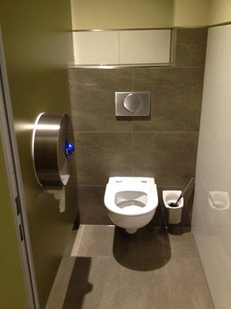 Die fertig montierten Toilettenanlage Links Damen WC, Rechts Behinderten WC